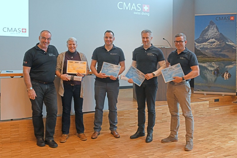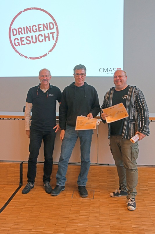 Willi Knöpfel (Präsident CMAS swiss diving), Fabio Gilardi (Aktuar CMAS swiss diving), Laurence Denis (Kassier CMAS swiss diving) wurden ebenfalls einstimmig wiedergewählt.