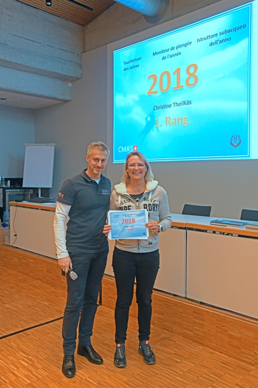 Zum Ende der Veranstaltung wurden noch die Tauchschule des Jahres („H2O die Tauchschule“) und die Tauchlehrerinnen und Tauchlehrer des Jahres (1. Platz Christine Theilkäs, 2. Platz Mani Oehler, 3. Platz Martin Fussen) erkoren.