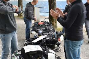 Am Sonntagmorgen folgten für beide Absolventen noch die mündlichen Prüfungen über «Materialkunde» und «Tauchunfälle», wo sie jeweils von zwei I4-Staff-Instruktoren ausführlich über ihr theoretisches Fachwissen befragt wurden.