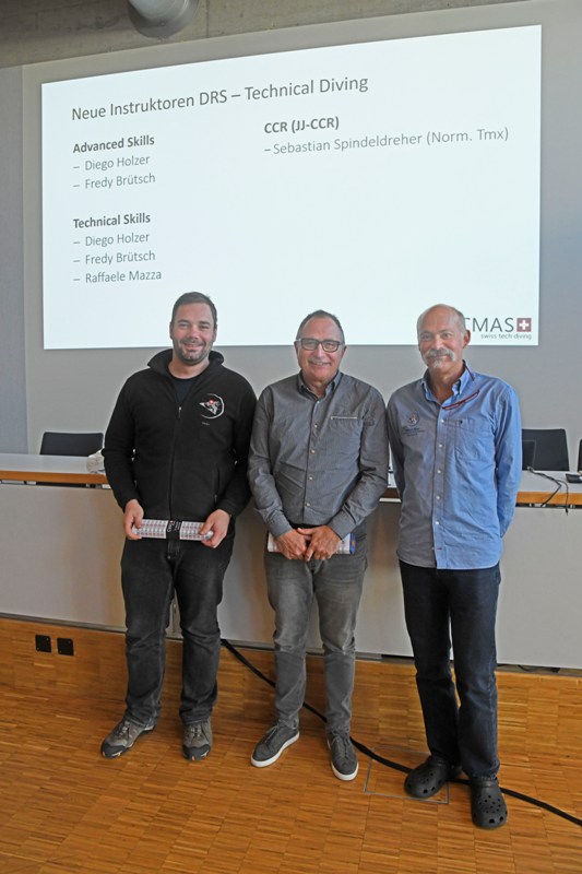 Im Bereich Staff erhielt Christine Thielkäs und Barbara Hügli das 2. Mandat im Apnoe Diving, Guido Angstmann das 2. Mandat Nitrox und Urs Eggli das definitive Mandat Nitrox. René Röösli erhielt das definitive Mandat im Cave 3. Neu in der DRS vertritt Judith Häberli das Handicap Diving (1. Mandat).