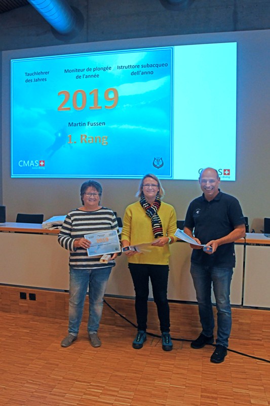 Zum Ende der Veranstaltung wurden noch die Tauchschule des Jahres («Tawas») und die Tauchlehrerinnen und Tauchlehrer des Jahres (1. Platz Martin Fussen, 2. Platz Christine Theilkäs, 3. Platz Mani Oehler) erkoren.