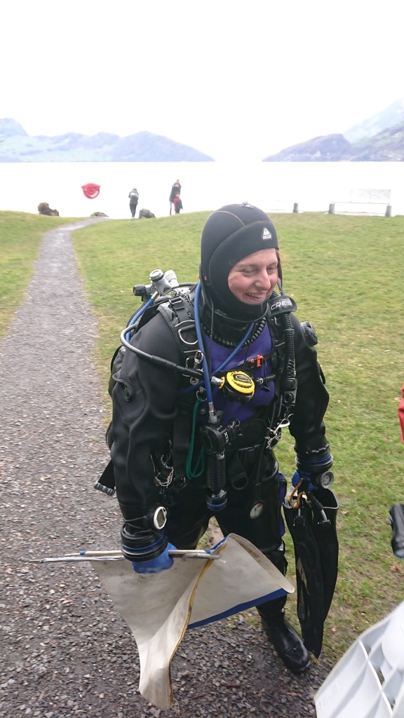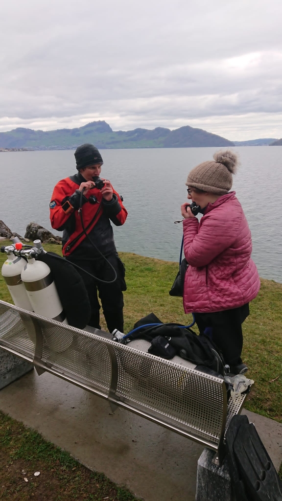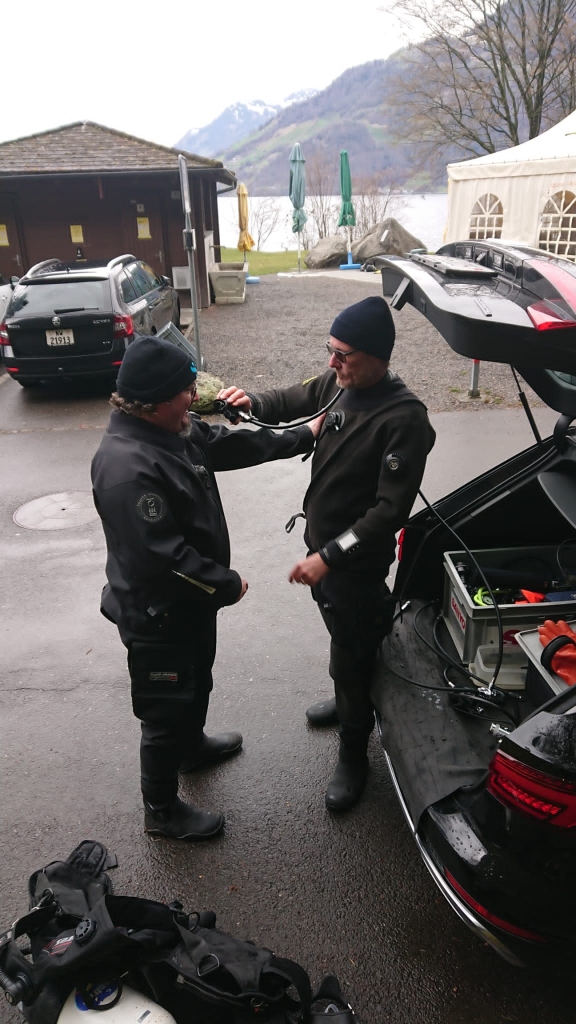 Heute trafen wir uns für den ersten Praxistauchgang in Rütenen, Beckenried. Unbeeindruckt von dem kühlnassen Wetter ging es zuerst in die Vorstellungsrunde, bei der wir unsere heutigen Ausbildner näher kennen lernten und auch das Tagesprogramm uns anschauten. Es ging erst in die Individuellen Briefings, wie vermittelt man Übungen Über- als auch Unterwasser. Die erste Challenge war das Masken leeren, das man am besten über ganz kleine Schritte erreichen kann. Nach dem meine „Tauchschülerin Judith“ das erfolgreich gelernt hatte, gings weiter in die Wechselatmung. Diese wurde Corona-bedingt nur angedeutet, ging aber sehr gut. Die letzte Challenge des Tages war unsere „Tauchtaufe“ – leider konnte ich meinem potentiellen Anfänger keine Fische zeigen, doch das Fischfutter a la Köcherfliegenlarve konnte ich Unterwasser finden. Meine Tauchschülerin hatte dennoch angebiessen und sich für einen Kurs angemeldet ????. Meinen Mit-I1-Anwärtner ist auch gut ergangen heute und so ging es ins Schlussbrefing. Trotz der weiten Heimreise blieb noch ein wenig Zeit für ein Schwatz und heissen Kaffee/Tee. Ein herzlicher Dank nochmals an alles Ausbildern, die uns auf Trab hielten, aber auch immer mit hilfreichen Ratschlägen zur Seite standen und Inputs gaben.