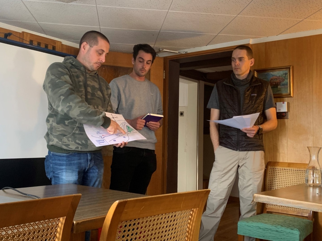 Der Morgen verging wie im Flug, frisch gestärkt und satt gegessen fassten wir unsere Aufgabe für den Nachmittag: Vorbereiten eines Ausbildungstages im Rahmen einer D2-Schulung. Wir vier Teilnehmer zogen alle Register und brachten unsere Ideen auf Papier und Flipchart. Im Anschluss präsentierten wir unseren Plan den Instruktoren.