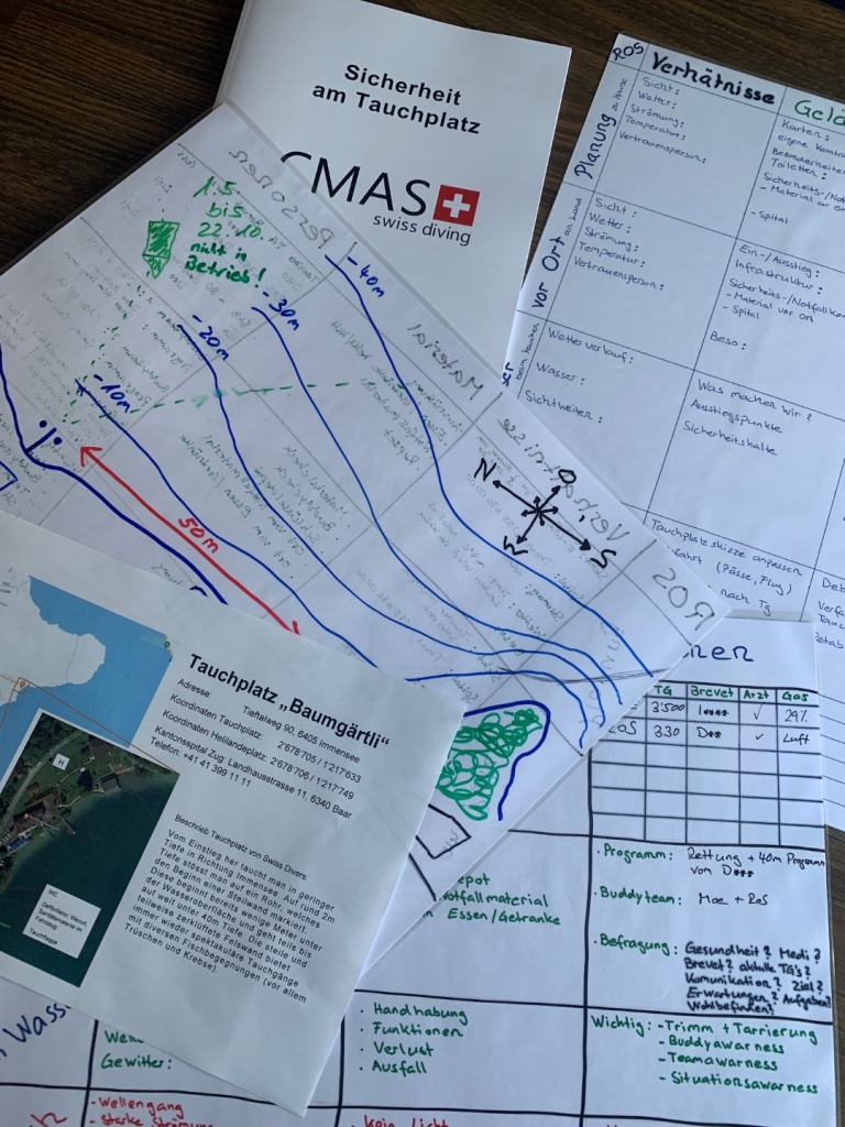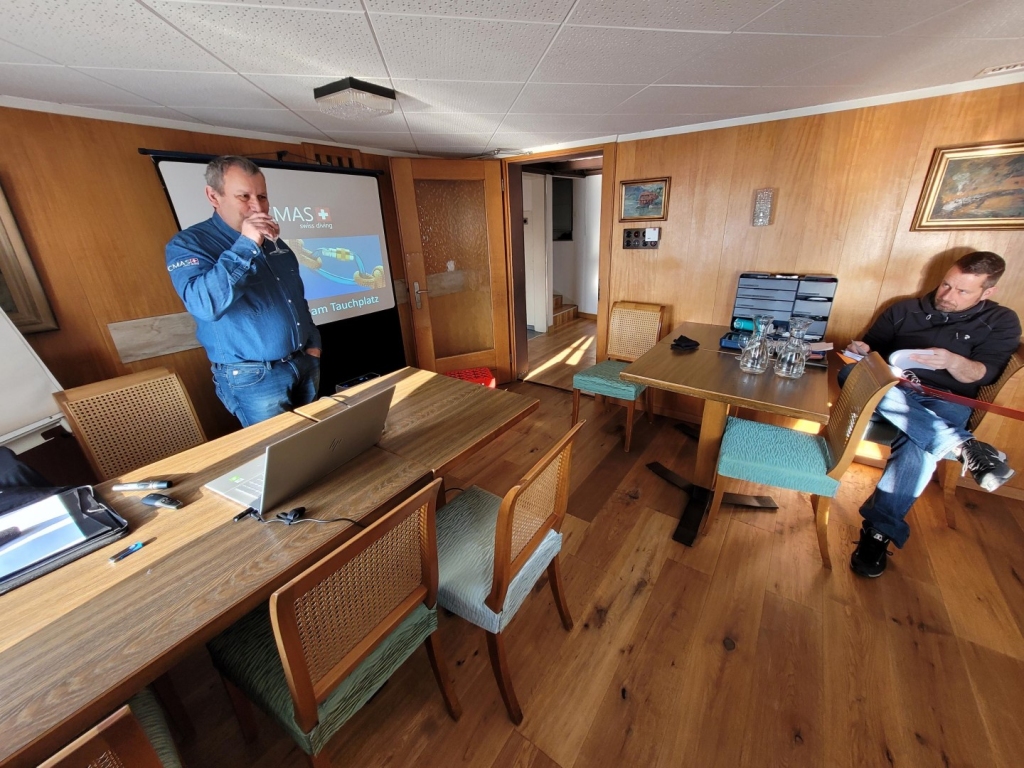 Am Sonntag den 6. März 2022 fand bei schönstem Wetter das Modul E, Sicherheit am Tauchplatz, beim „Baumgärtli" in Immensee statt. Zu Kursbeginn trafen wir uns im taucherfreundlichen Restaurant Baumgarten.