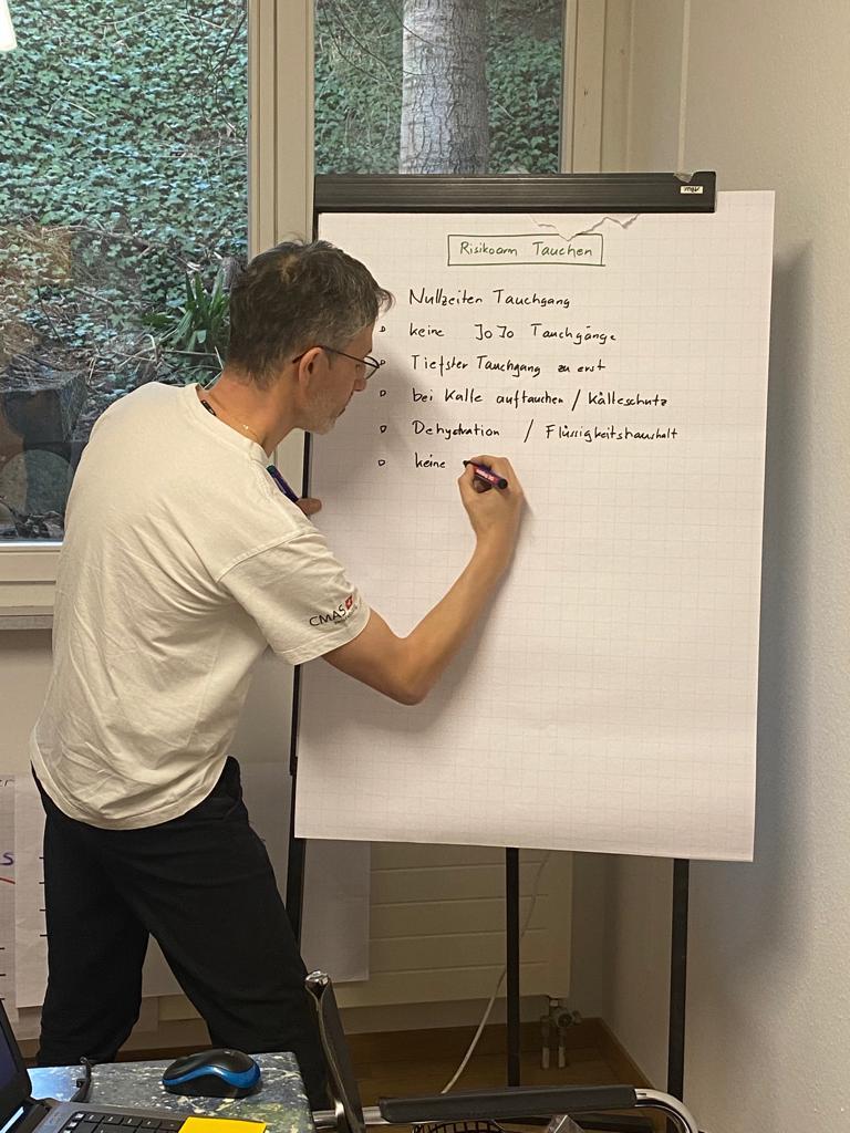Nach dem Essen wurde nochmals weitere Theorie zur Vermeidung von Dekompressionskrankheiten erläutert.