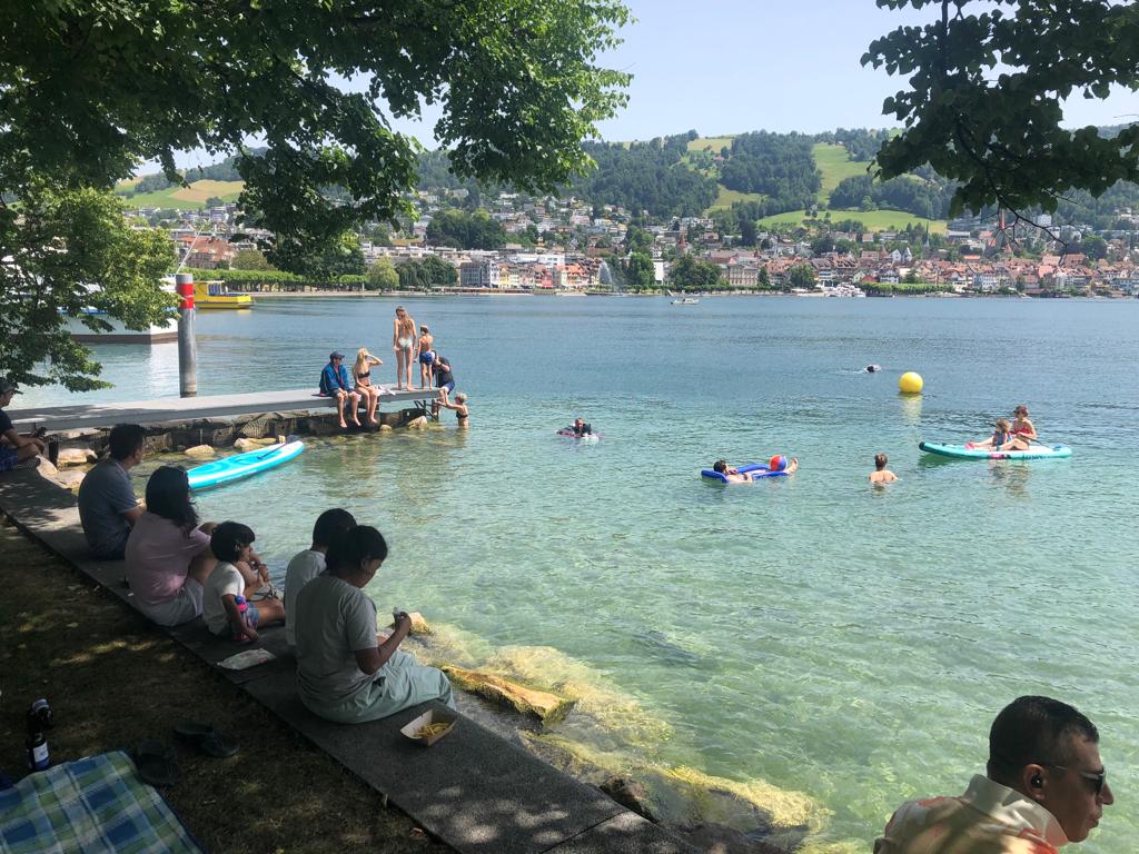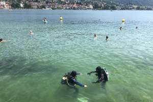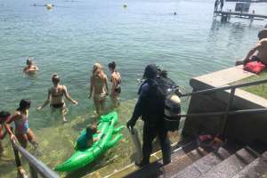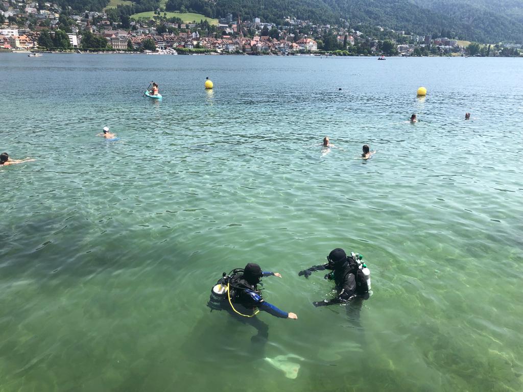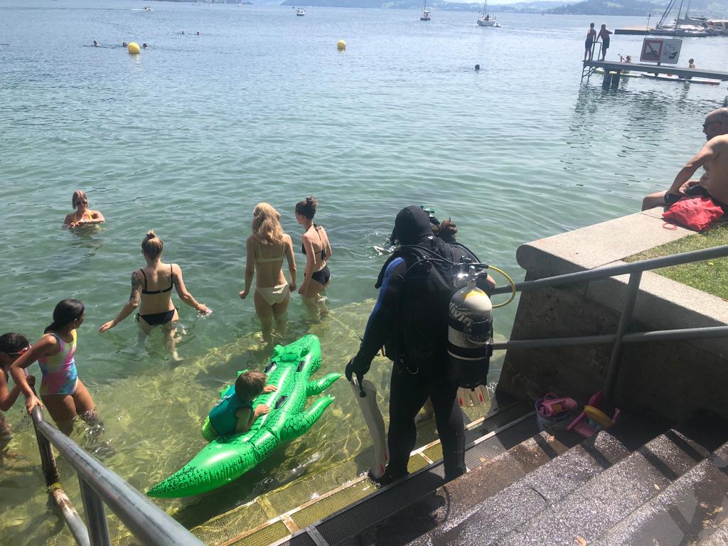 Viele Badegäste säumten unseren Tauchplatz, wir standen einigen Passanten Rede und Antwort zu unserem vorhaben und konnten die Praxislektionen am Nachmittag gemäss Plan durchführen.