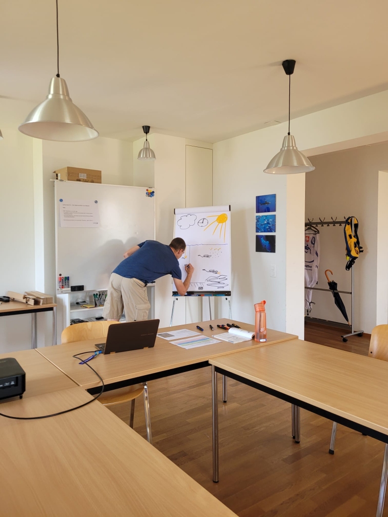 Bereits in der Mittagspause konnte Toni als neuem i1-Tauchlerhrer gratuliert werden – er hatte die Theorie bereits vorher absolviert und musste Unfallbedingt pausieren.