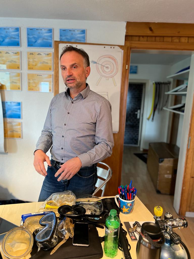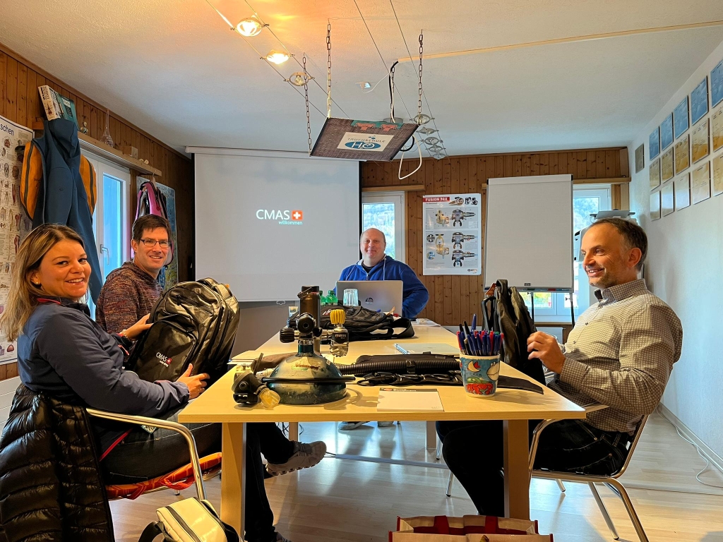 Im Modul A weihte uns Guido Angstmann am Vormittag nach kurzem Kennenlernen in die Mysterien der CMAS ein. Neben der nationalen und internationalen Organisation des Taucherbundes durften wir in die vielfältigen Möglichkeiten der Homepage eintauchen, welche uns in Zukunft bei unserer Tätigkeit unterstützen wird. Nachdem wir nun alle gemerkt haben, dass wir uns als Tauchlehrer anmelden müssen, werden wir sie gerne eingehender durchforsten. Auch die französische Aussprache des ungekürzten Verbandsnamens üben wir schon fleissig.