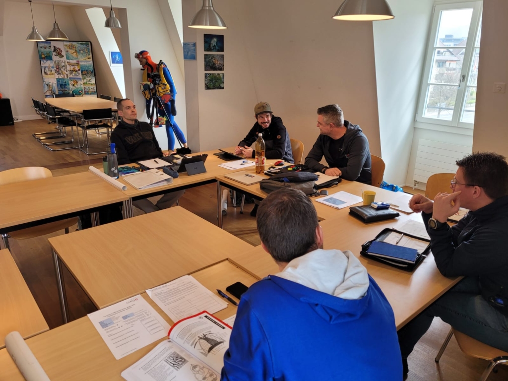 Am 5. März trafen wir uns mit Guido Angstmann zum Start der I2 Ausbildung in den Räumlichkeiten des Tauchclubs Zug. Wir heisst Kevin Wyss, Nathan Stutz, Reto Aebi, Simon Vogler, Thomas Meyer und Sandro Christinet. Guido führte uns mit einem kurzen Wissenstest schnell und klar vor Augen, was von uns als zukünftige I2 erwartet wird. Mit den Theorien vom D3 und I1 noch im Hinterkopf wurde uns bewusst, dass die Antworten von damals wohl nicht mehr ganz reichen werden. Weiter verschafften wir uns einen Überblick über die Website von CMAS und über den weiteren Weg zum I2.