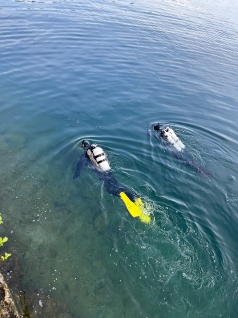 Nach den erfolgreich absolvierten Disziplinen stürzten wir uns in unsere Trockentauchanzüge, denn eine 40 Meter Partnerrettung stand auch noch an. Wir konnten die beiden I3 ebenfalls erfolgreich aus der Tiefe retten und so unsere ersten Prüfungen zum I2 bestehen. Weiter geht es morgen mit der Sättigung und Entsättigung...