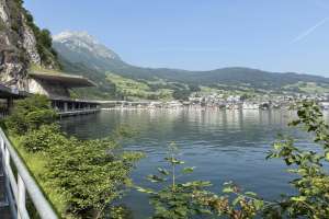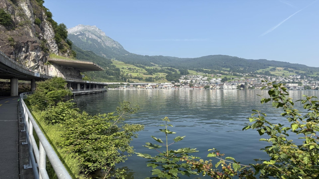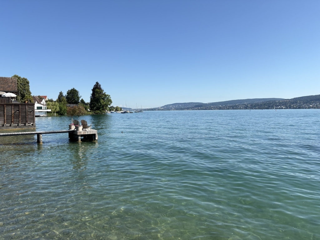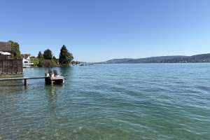 Zugang zum Wasser über eine Rasenfläche und eine breite flache Treppe, im Wasser ist Bootsverkehr nicht ganz auszuschliessen, unter Wasser ein leicht abfallendes Gelände. Alles in allem ein idealer Schulungstauchplatz. Der Schüler freut sich, dass er nach den Tauchgängen im Walensee endlich einmal eine passable Sicht hat und auch ein paar Fische beobachten kann. Seine Wasserlage wird mit jedem Tauchgang besser.