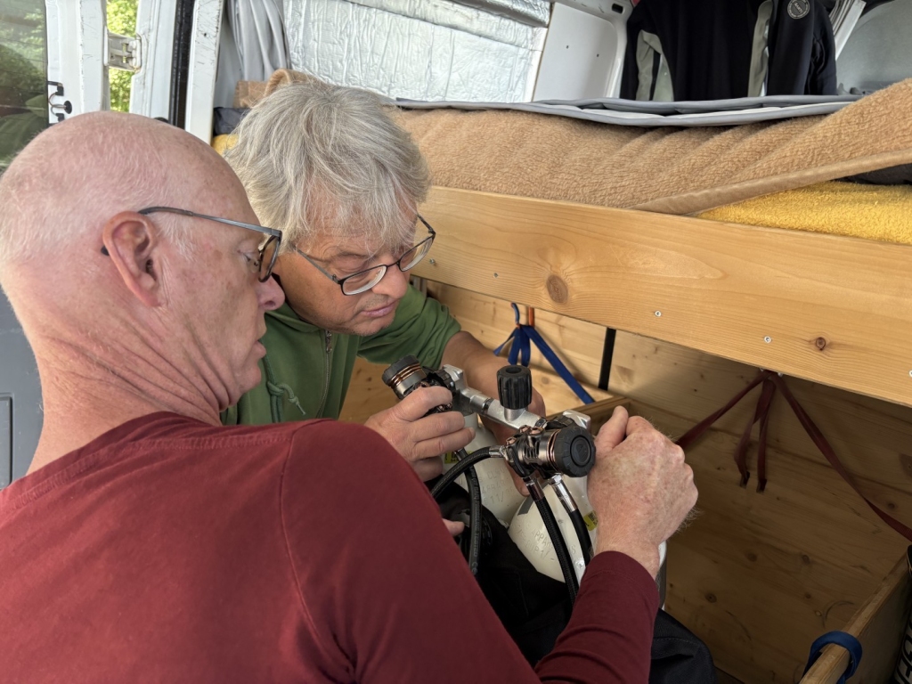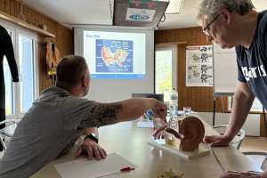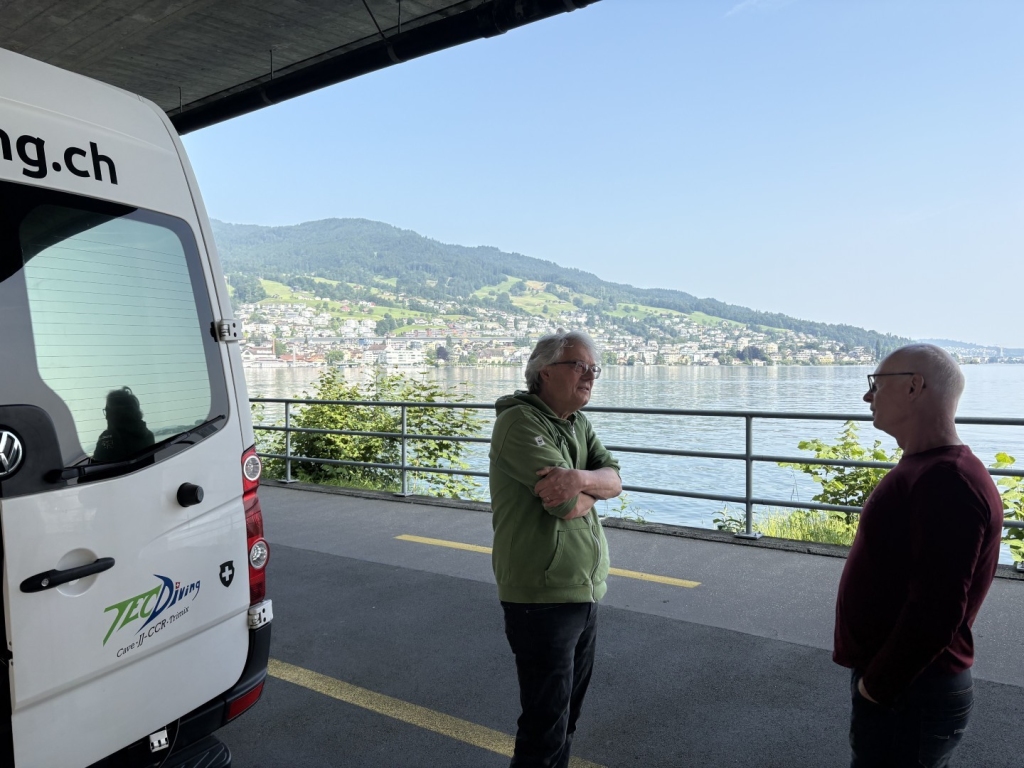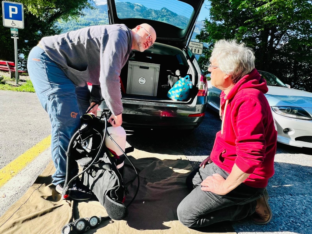 Das Modul „Sicherheit am Tauchplatz“ ist ganz realitätsnah gestaltet. Als Vorbereitung plane ich ein Sicherheits- und ein Notfallkonzept für den Tauchplatz Lopper am Vierwaldstättersee. Dazu einen Tauchgang mit René Röösli, der vorgibt, ein Padi-AOWD-Brevet zu besitzen und noch nie in einem See getaucht zu haben. Dafür, dass er ein Anfänger ist, macht er es dann ganz gut… Nach dem Tauchgang folgt die Manöverkritik. Die gewählte Tiefe war für einen See-Neuling etwas zu ambitioniert und ich hätte ihn etwas enger unter Kontrolle haben sollen.