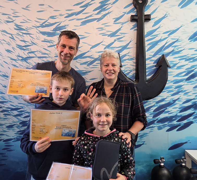 In vier aufregenden, erlebnisreichen Tagen konnten ein engagierter Tauchlehrer zum Kindertauchlehrer und zwei motivierte Kids erfolgreich zum Junior Diver 2 ausgebildet werden. Es ist jedes Mal faszinierend zu sehen, mit welcher Freude, Neugier und Leichtigkeit sich Kinder unter Wasser bewegen – ihre Begeisterung steckt einfach an!