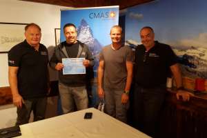 Après un souper en toute décontraction avec tous les membres de la commission d'examen, il a dû passer les deux examens oraux (matériel et accidents de plongée) le dimanche matin, qu'il a également bien réussis.