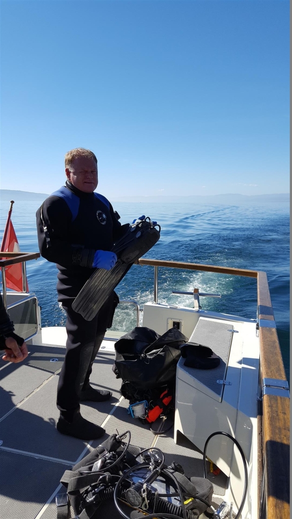 Comme déjà mentionné, Xavier Disler s’est présenté aux examens motivé et bien préparé. Le samedi matin, il a réussi les examens écrits (matelotage et anatomie / physiologie) en obtenant de bonnes notes. Lors de l'exigeante plongée à 50 m, qui s'est déroulée depuis un bateau de la Brigade de la gendarmerie du lac (Vaud) au site de plongée « Rivaz », il a également prouvé sa grande compétence lors de la partie pratique des examens.