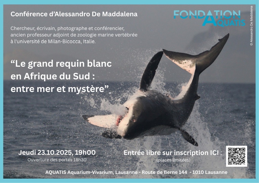 Ne manquez pas la prochaine conférence à AQUATIS le 23 octobre prochain donnée par Alessandro De Maddalena, l'un des experts majeurs des requins au monde.